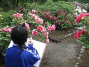 中学では写生会が弘前公園で行われました。午前中は時々小雨の降る天気でしたが、美術科教師のアドバイスを全体で聞いた後、自分の描きたい場所を決め、早速絵にとりかかりました。午後は雨足が強くなったため、弘前市立博物館の“琳派・若沖と雅の世界”を見学しました。