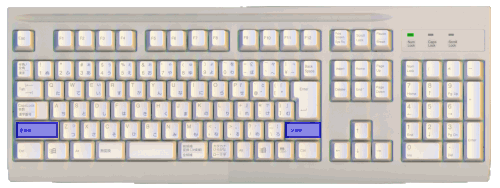 キーボードには文字がたくさん書かれていますが、直接入力で使うのは各キーの左側に書かれている文字です。