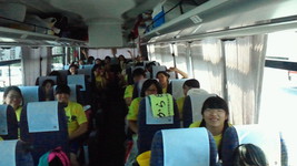 吹田SAであらたに4号車に吹奏楽部の一部が乗りこみました。補助席も使いバスの中はみっしりです。このバスは大阪なんばワシントンホテルに向かいます。移動時間は1時間の予定です(15:06)n